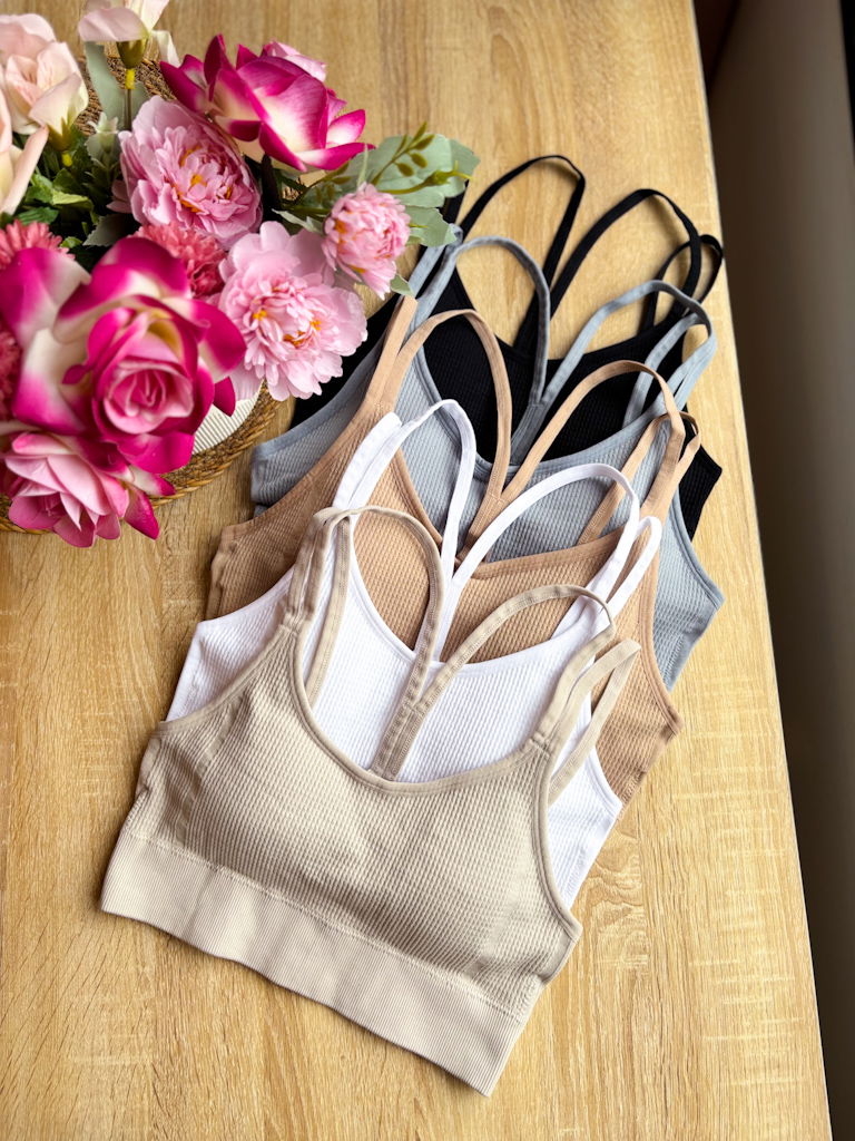 Top cruzado, se abrocha atras. Super lindo, taza desmontable